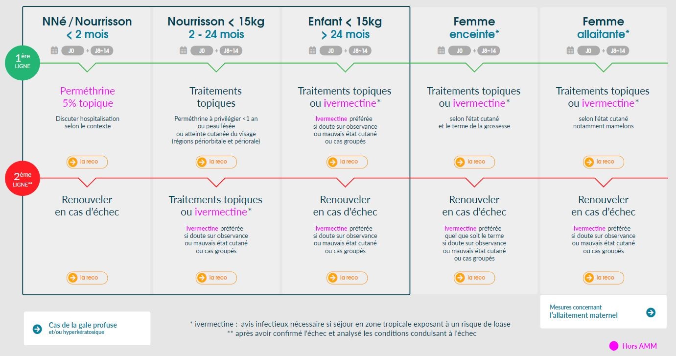 Ces recommandations ont été utilisées pour concevoir un algorithme pratique de prise de décision pour les nourrissons/enfants et femme enceinte/allaitante https://reco.sfdermato.org/.